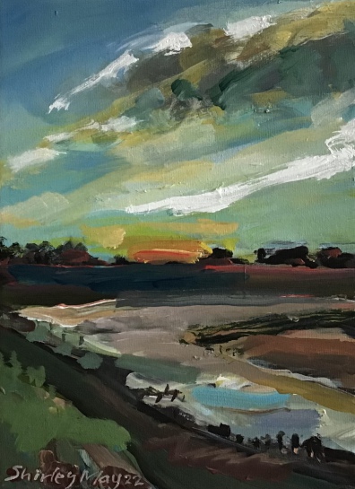 "Adur Sunset" (acrylics on canvas, 22.5cms x 30.5 cms.