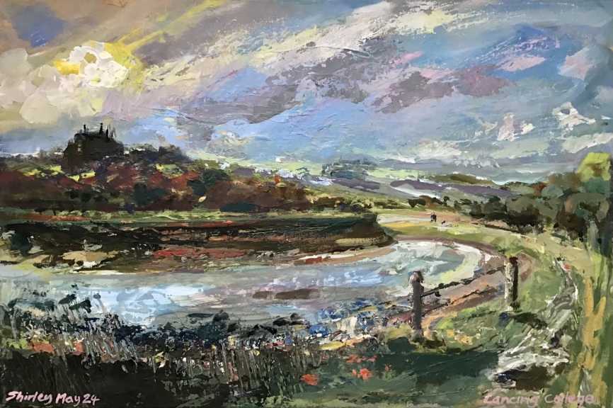"Lancing College" (40 x 60 cm, acrylics on canvas, Plein air and then studio, £200 framed in white tray frame)