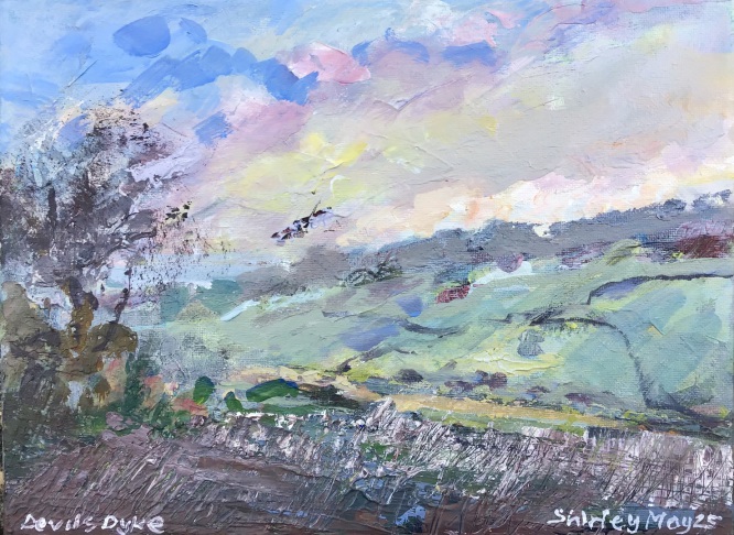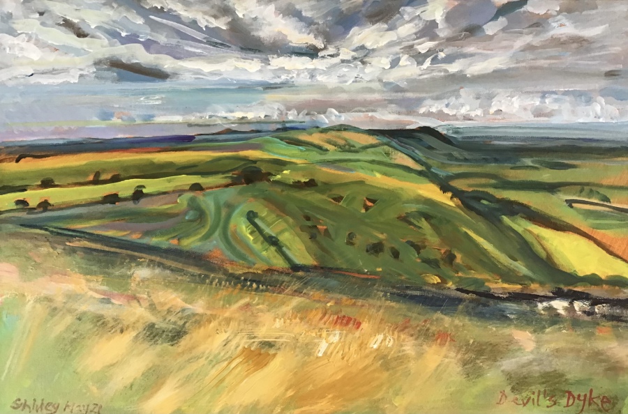 "Devil's Dyke this afternoon" (Acrylics on canvas, Plein air, 61 x 40.5 cms) £150 framed in grey tray frame.