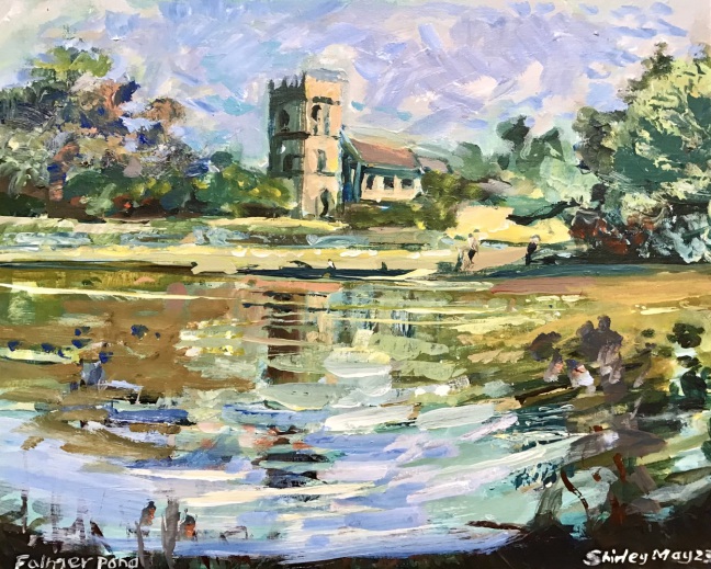 "Falmer Pond" £180 (acrylics on canvas board, 33 x 41cm, framed, painted en Plein air)