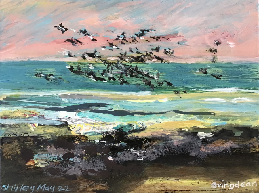"Starlings near Ovingdean cliffs" (Acrylics on canvas 30 x 23 cms) £120 unframed